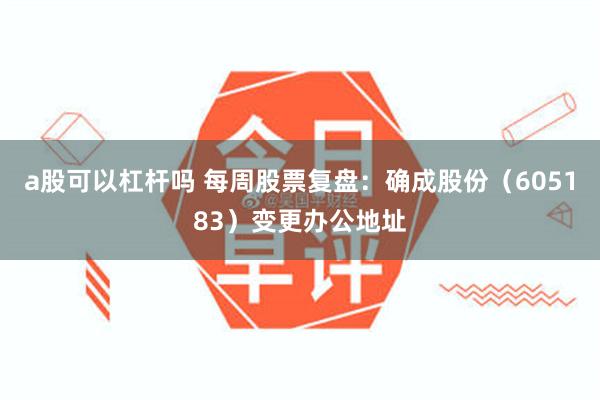 a股可以杠杆吗 每周股票复盘:确成股份(605183)变更办公地址